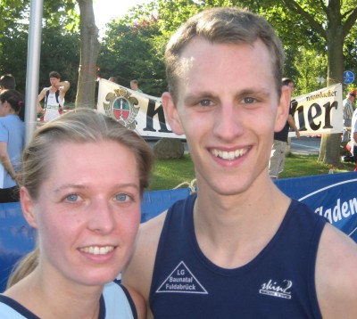 Die beiden Sieger über 5 km Melanie Räder (LG Kaufungen) und Johannes Wennmacher (LG Baunatal/Fuldabrück)
